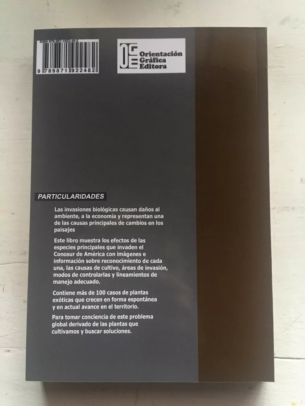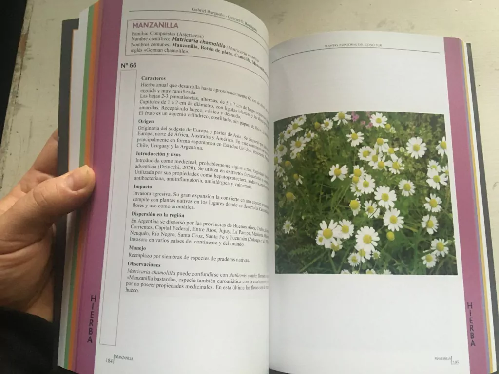 Las invasiones biológicas causan daños al ambiente, a la economía y representan una de las causas principales de cambios en los paisajes. Este libro muestra los efectos de las especies principales que invaden el Conosur de América con imágenes e información sobre reconocimiento de cada una, las cuasas de cultivo, áreas de invasión, modos de controlarlas y lineamientos de manejo adecuado. Contiene más de 100 casos de plantas exóticas que crecen de forma espontánea y en actual avance en el territorio. Para tomar conciencia de este problema global derivado de las plantas que cultivamos y buscar soluciones.