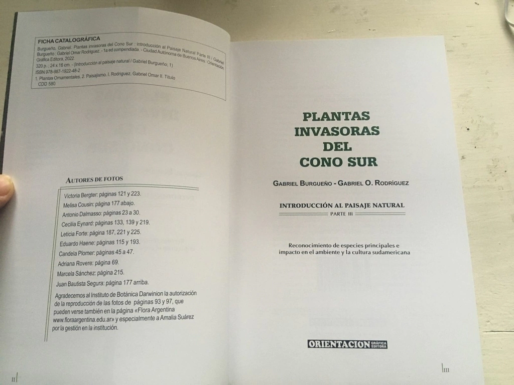 Reconocimiento de especies principales e impacto en el ambiente y la cultura sudamericana. 1a Edición. Ciuedad Autónoma de Buenos Aires. Orientación Gráfica Editora. 2022. 320 p. , 24 x 16 cm. ISBN 978-987-1922-48-2. IMPRESA A COLOR.